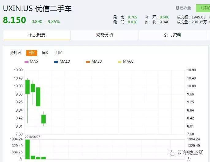 上市不到一周,二手车电商优信(NASDAQ:UXIN)即已跌破9美元的发行价。