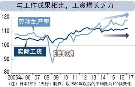 据日本银央行统计,最近5年里,日本劳动生产率提高了9%,不过,剔除物价波动影响后的实际工资涨幅仅为2%。