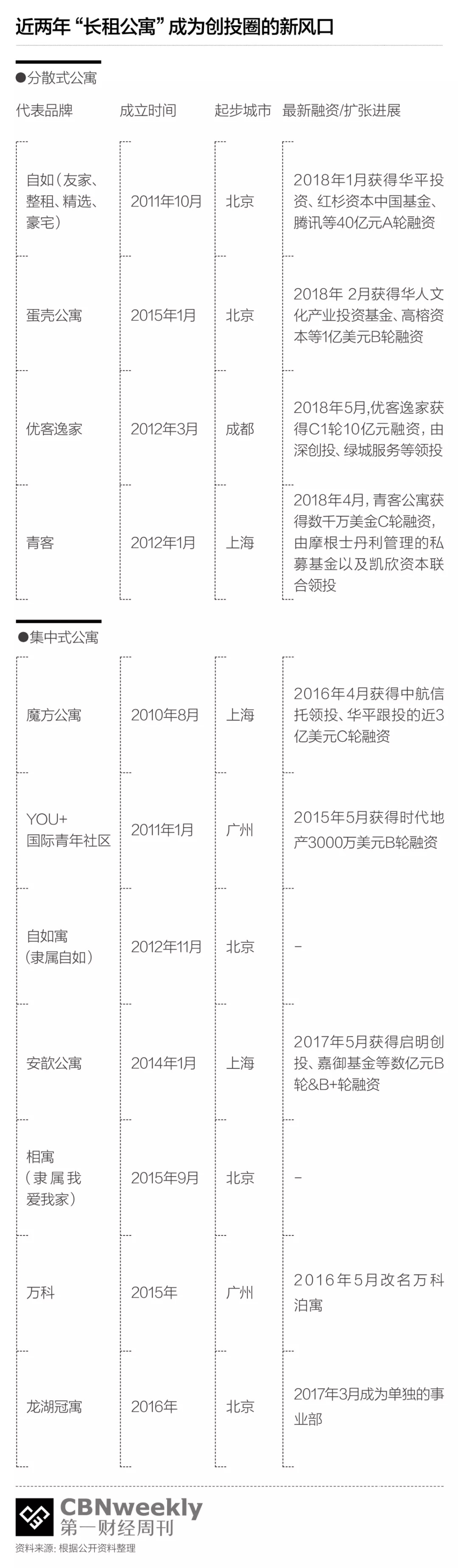 2011年在链家地产内部孵化的长租项目品牌“自如”,以及2015年成立的创业公司蛋壳公寓,都属于“分散式”的长租公寓,简单说就是指从分散的房东手中取得房源,经过标准化改造或装修后,统一出租管理的一种租赁公寓模式。这种模式,相比上一代分散式的住房出租业态,利用标准化的服务为年轻租客提供了环境更好、租期更为稳定的居住体验,因而也在过去几年渐渐成为“居住”领域的创业热点。
