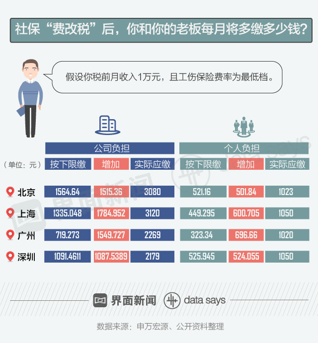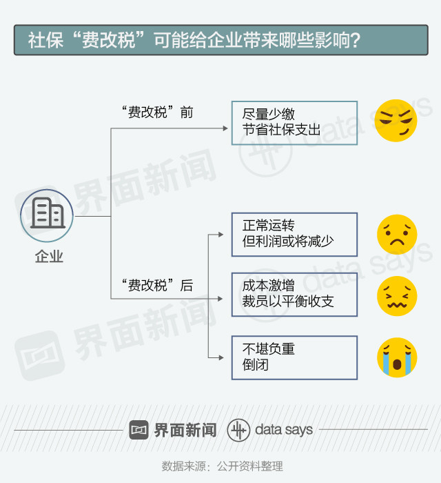 这项政策被舆论称为“社保费改税”,一经发布就引起了社会各界的热烈讨论:有声音认为这项政策将规范企业社保缴纳行为、切实提高个人社保待遇,也有声音认为这会加剧企业负担、减少个人可支配收入。
