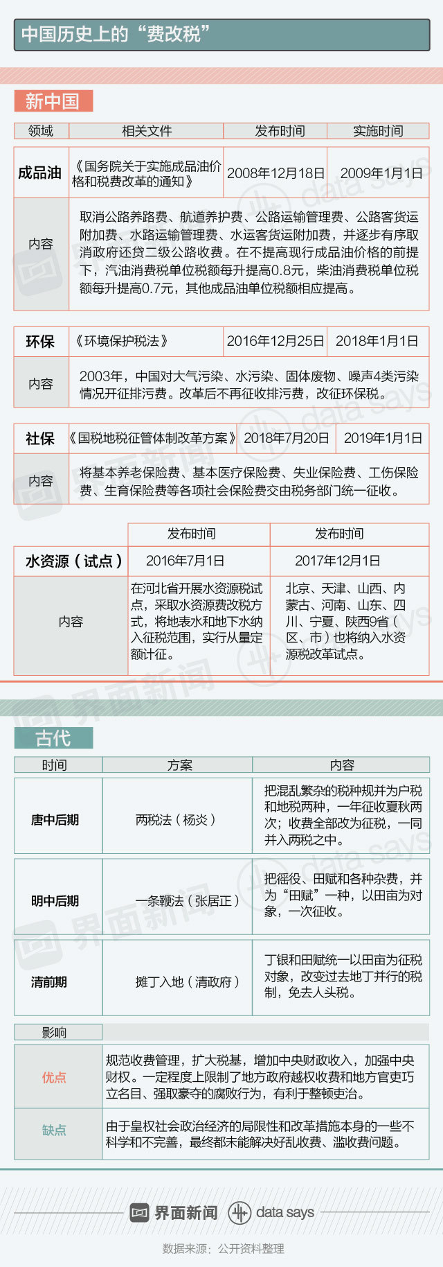 据界面数据(公众号ID:tuli_shuju)不完全统计,中国已在成品油、环保两个领域正式进行“费改税”,还有一项水资源“费改税”目前还在试点阶段,尚未出台正式的政策通知。