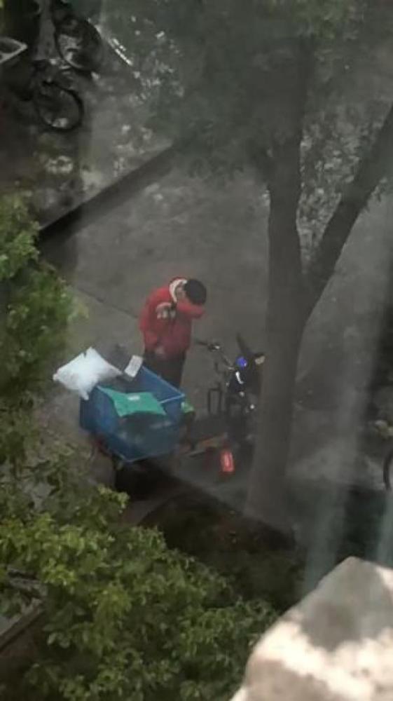 快递小哥在雨中暴哭是否因快递被偷?