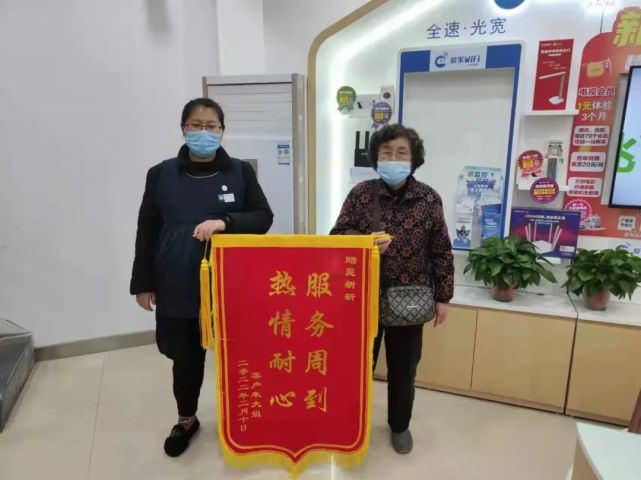 “我的健康码和行程码怎么看不到?”年过七旬的朱阿姨大年初四就到了徐州市云龙区绿地小区移动营业厅。当时接待她的移动工作人员小晁虽怀胎八月,仍立刻放下中饭,回到工位解答朱阿姨的问题。朱阿姨用的是过世老伴的号码,支付宝绑定了家人电话,小晁想方设法为她获取了本人的健康码、行程码。“我待了一个小时,她态度特别好。我记不住的,她就再说一次,还用笔写给我。”朱阿姨为此给营业厅送了锦旗。