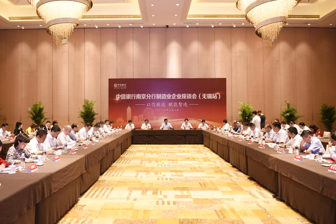 7月8日,中信银行南京分行举办“以信致远赋能智造”制造业企业座谈会(无锡站)。中信银行业务总监、南京分行行长陆金根携中信证券、中信资本等在苏协同机构负责人,与利港发电、远景科技等13家无锡知名制造企业高管齐聚一堂,围绕疫情背景下,金融业如何支持制造业实现突围建言献策,开展了一场“头脑风暴”。无锡市政府、金融监管局、人行、银保监分局相关领导出席会议。