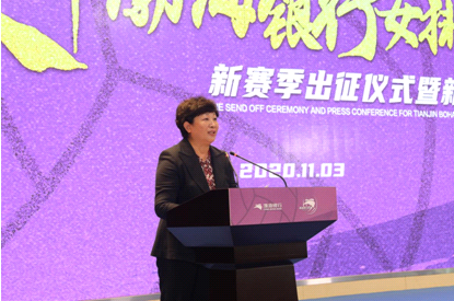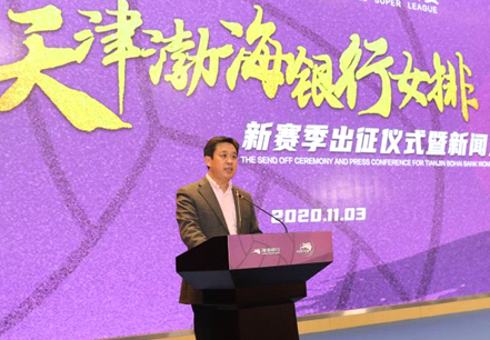 天津市体育局局长、党组书记李克敏(上图)对天津渤海银行女排寄予厚望。他在致辞中表示,希望女排队员们在天津市排球运动管理中心和主教练王宝泉指导的带领下,不忘初心,牢记使命,克服困难,奋勇拼搏,不畏强手,敢于争先,大力弘扬新时代女排精神,努力在2020-2021年中国排球超级联赛中取得优异成绩,为天津争光,为俱乐部添彩!