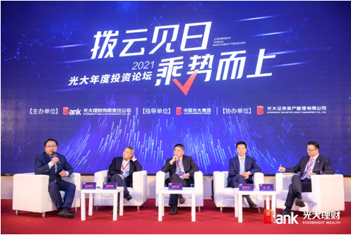 随后,在光大理财董事长张旭阳的主持下,建信理财总裁谢国旺、中信证券总经理杨明辉、易方达基金董事长詹余引、光大信托董事长冯翔围绕机构发展定位与当前投资思路展开了热烈讨论。