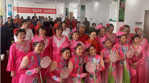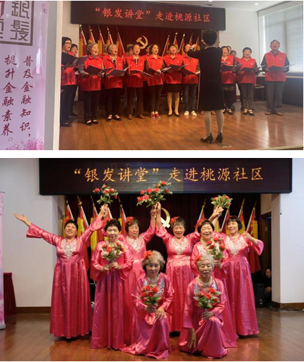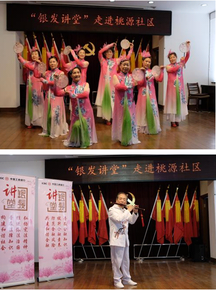 本次银发讲堂也邀请了桃源社区合唱团表演歌曲《再唱山歌给党听》 、《共筑中国梦》及越剧《我把鲜花献给党》