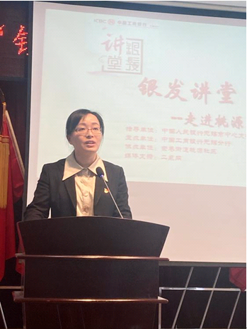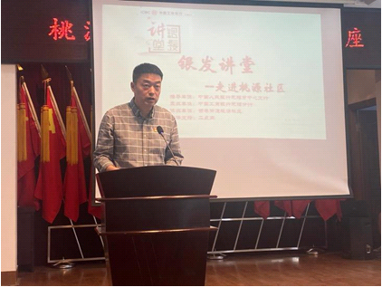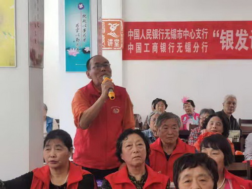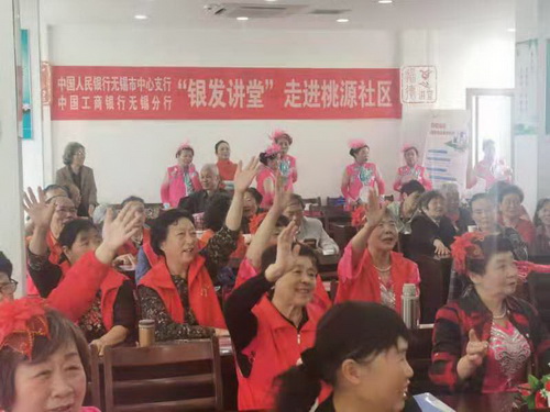 本次活动人民银行无锡中心支行办公室副主任杨月、工商银行无锡分行副行长张晔蕴、桃园社区书记王且军等领导共同出席。桃源社区当地居民、桃源社区合唱团、老年大学芬芳艺术团等中老年群体100人左右参与了此次银发讲堂。