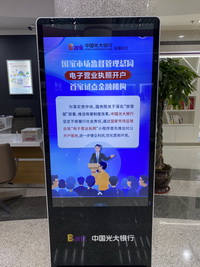 目前,光大银行无锡分行积极通过厅堂海报机、产品折页等进行“电子营业执照”小程序开户的宣传。下一步,该行将加大市场宣传力度,积极运用“电子营业执照”小程序,抢占市场先机,落实好总行“真开户,开真户”的政策要求,批量引入优质对公客户,通过名星产品和高效服务,进一步提升光大银行的品牌影响力和市场认可度。