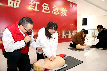 随后,市急救中心的志愿者老师开展现场公共急救培训课堂,为到场人员介绍心肺复苏、AED除颤等急救知识。现场人员积极参与急救培训,亲自体验急救过程。一位工行工作人员表示:“急救过程就是与死神赛跑,以前我们肯救不会救,学习急救技能后我们肯救、会救、能救。学习急救技能不仅提升我们工行的服务水准,也是作为社会公民关心他人、关心社会的义务。”