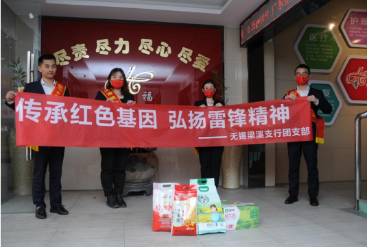 3月5日,梁溪支行前往无锡市幸福颐养院为老人带来米、牛奶、食用油等物资,献上自己的一份心意,同时帮助老人打扫房间,陪老人唠嗑解闷,并向老人普及金融反诈知识。