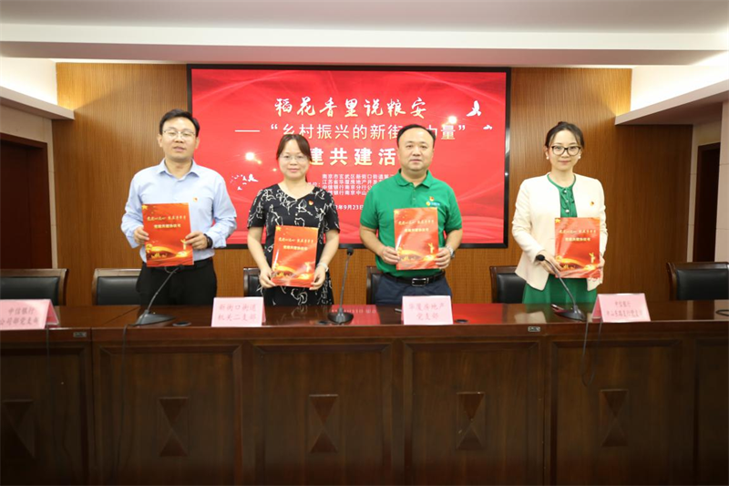 活动当天,中信银行南京分行公司银行部党支部、中山东路支行党支部、新街口街道第二党支部、苏粮米业党支部四个支部签订党建共建合作协议,三方未来将以党建为引领,围绕乡村“五个振兴”,依托各自优势服务“三农”工作,把更多金融活水、科技智慧和治理经验送到田间地头,走好新时代共富之路。活动中,中信银行南京分行党员代表就金融服务乡村振兴做主题发言,三方进行了探讨交流,中信银行南京分行和苏粮集团还一起向新街口街道赠送书籍。