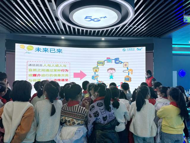 课堂上,移动“青年讲师团”的老师们热情洋溢地给青少年们讲述通信发展史、云计算、物联网元宇宙等科学知识,通过丰富生动的案例、通俗易懂的漫画形式让大家对“看不见”“摸不着”的5G通信和广阔应用有了更具体的了解。同学们跟随着“老师们”的脚步,遨游在数字网络科技的科普世界里。