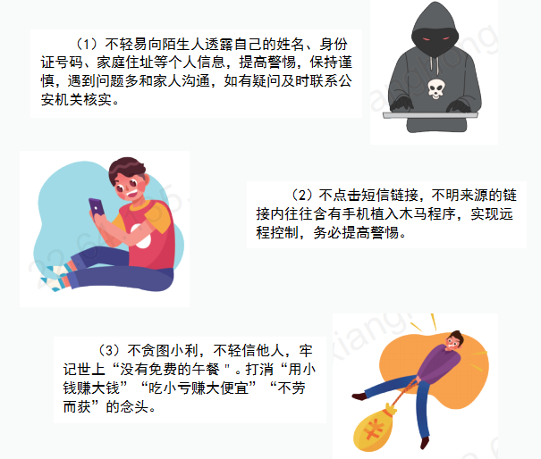 六个一律是:只要一谈到银行卡的,一律挂掉;只要一谈到中奖的,一律挂掉;只要一谈到电话转接公检法的,一律挂掉;所有短...